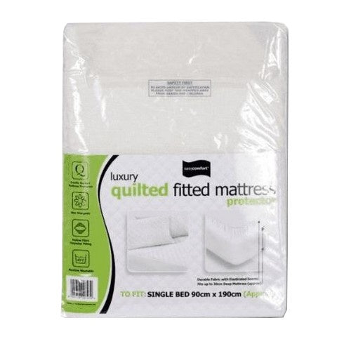 - Fitted mattress protector made from quilted material.