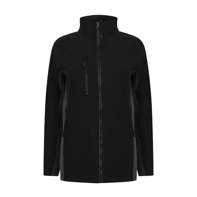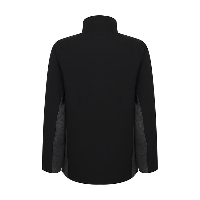 - A polyester micro fleece backed jacket with a collar high zip, chin guard and inner zip guard.