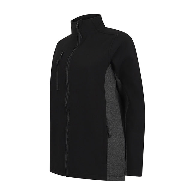 - Features a contrast under the arm and side body panels with a right chest zip pocket and inner pockets.