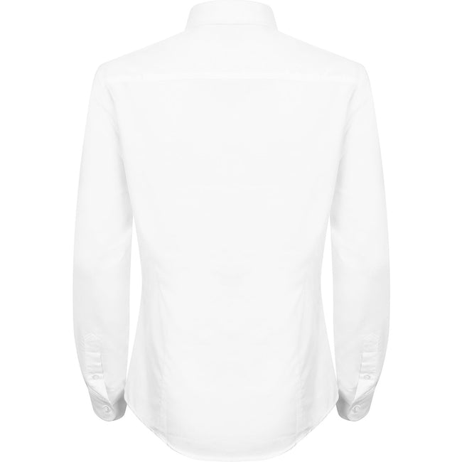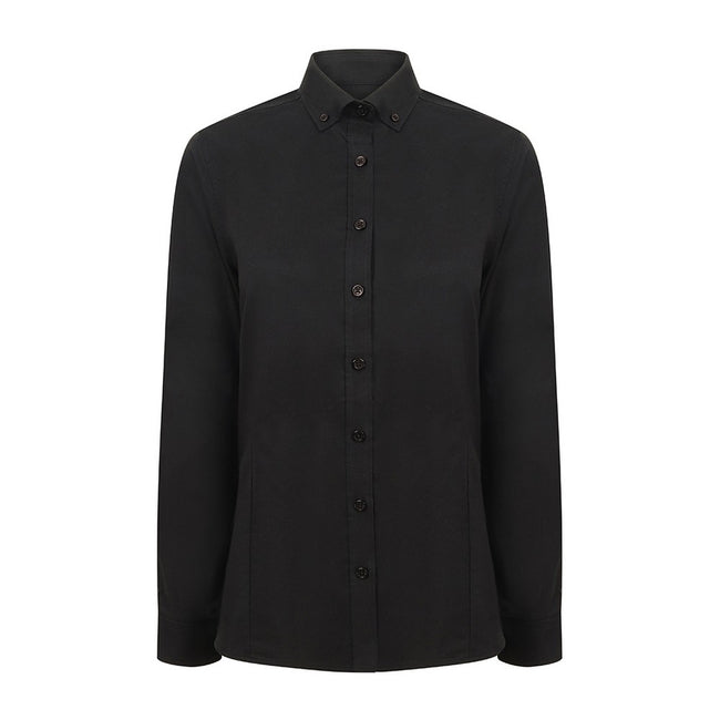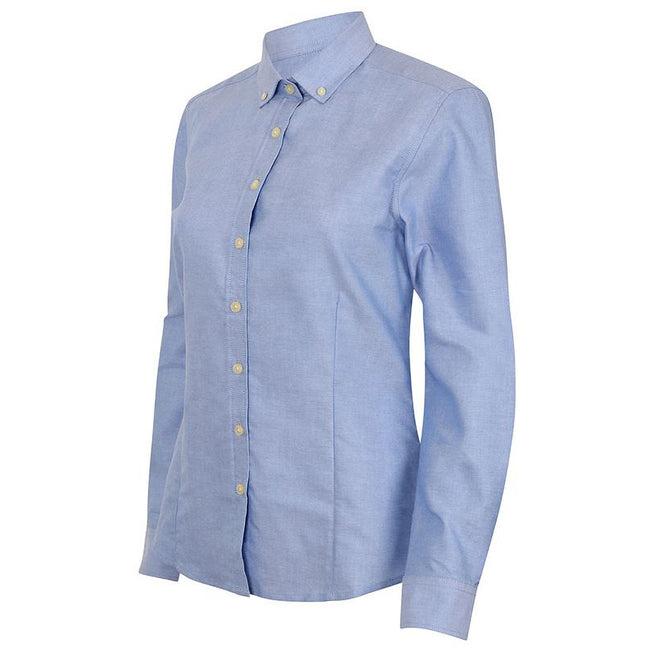 - Womens fitted, button-down Oxford shirt.