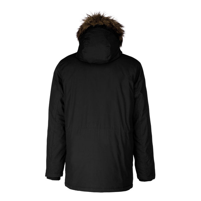 - Contrast lined padded hood with detachable faux fur trim.