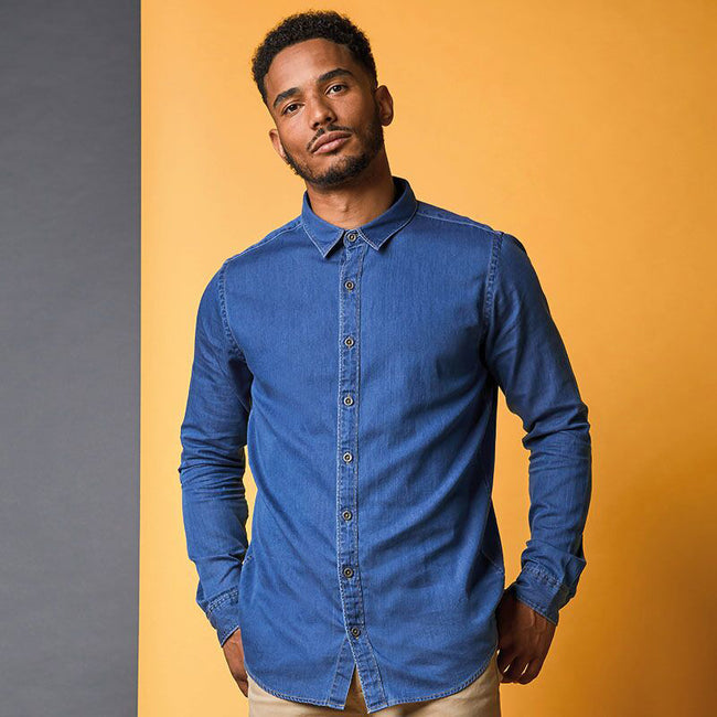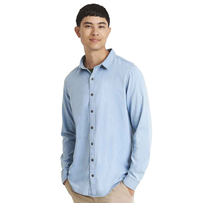 - Classic long sleeve lightweight denim shirt.