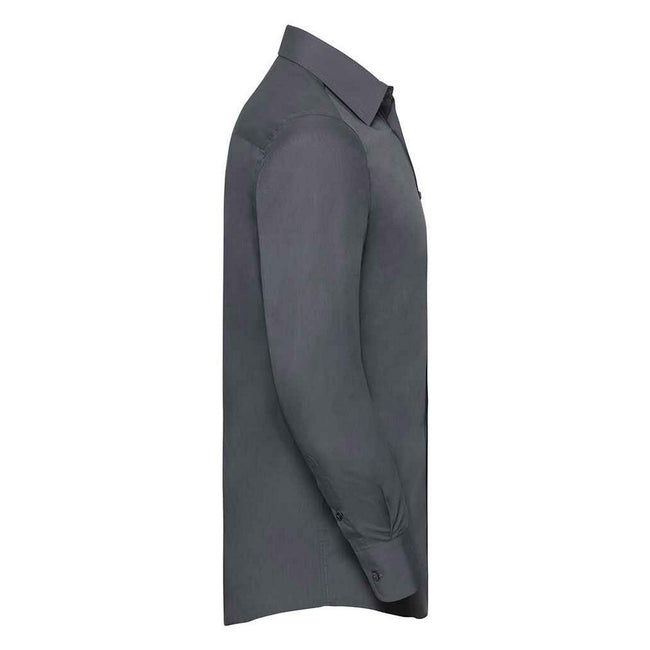- Neckline: Semi-Cutaway Boned Collar.