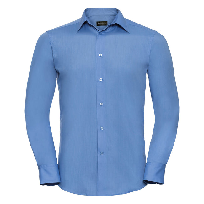 - Contemporary, tailored cut with modern stiffened, semi-cutaway boned collar.