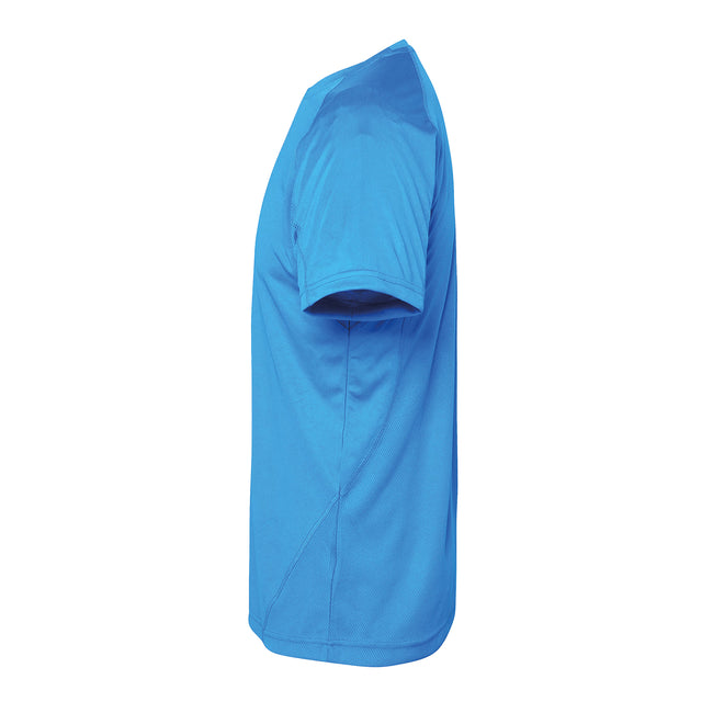 - Mens crew neck t-shirt with a mesh panel detailing on the reverse and under arms for superior breathability and wicking performance.