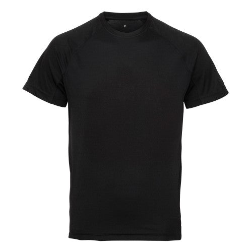 - Mens crew neck t-shirt with a mesh panel detailing on the reverse and under arms for superior breathability and wicking performance.