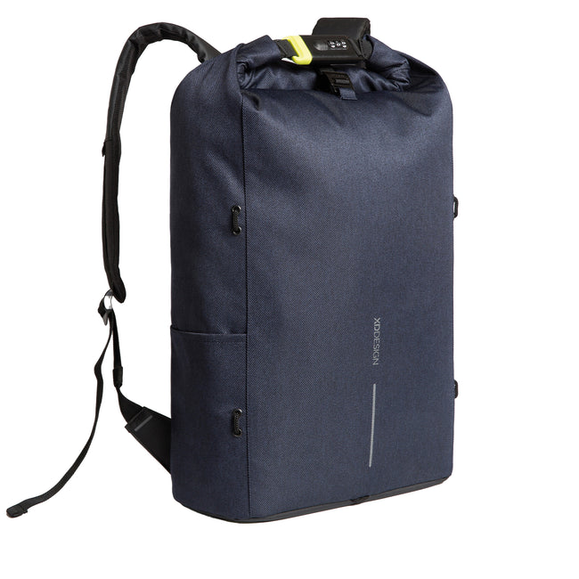 - 15.6" Padded Laptop Sleeve, Anti-Theft, Detachable Elastic Net, Grab Handle, RFID Security, Roll Top.