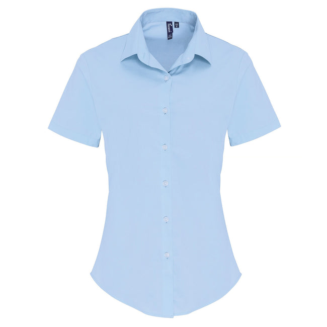 - Womens blouse made from cotton combined with elastane makes for a super soft, stretchy and comfortable fitted style for ladies.