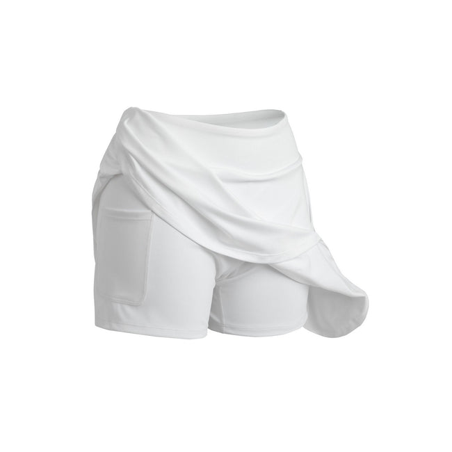 - Drape Detail, Full-Skirt Span, Integrated Under Shorts, Shape Retention.