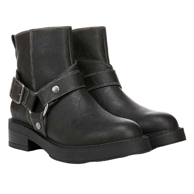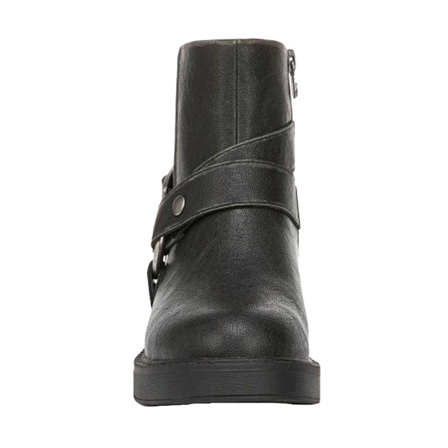 - 15 Inch Shaft, Buckle Detail, Stacked Effect Heel.