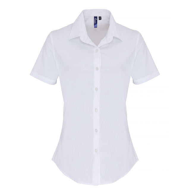 - Womens blouse made from cotton combined with elastane makes for a super soft, stretchy and comfortable fitted style for ladies.