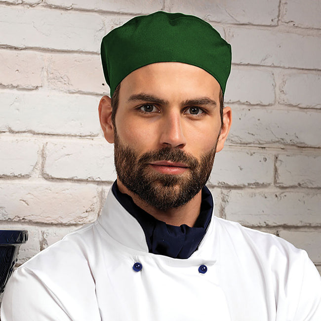 - Flat top chefs skull cap.
