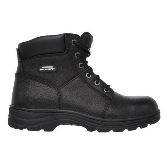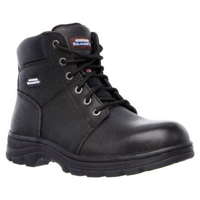 - Designed with a smooth full grain leather upper in a lace up design, with steel safety toe cap, padded ankle collar and tongue plus a cushioned memory foam insole.