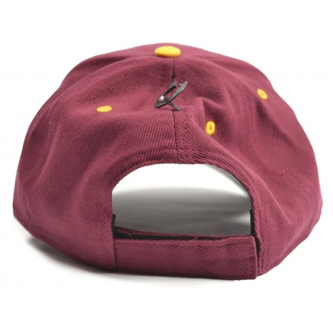 - Button at Top, Curved Peak, Decorative Stitch Detailing, Embroidered Eyelets.