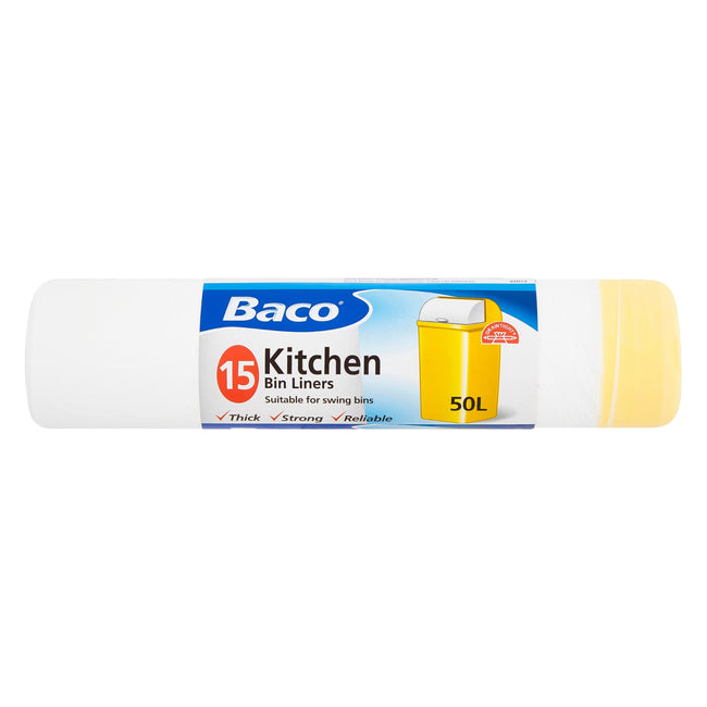 • Baco 50L White Pedal Bin Liners Roll of 15: Strong, thick and reliable bin liners that give you the reassurance you need.