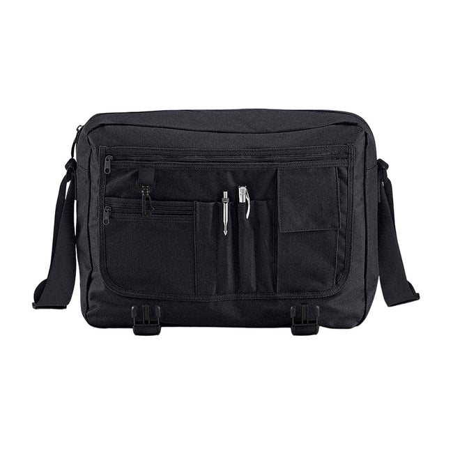 - Flap Top, Key Hook, Padded Adjustable Shoulder Straps, Tearaway Label.
