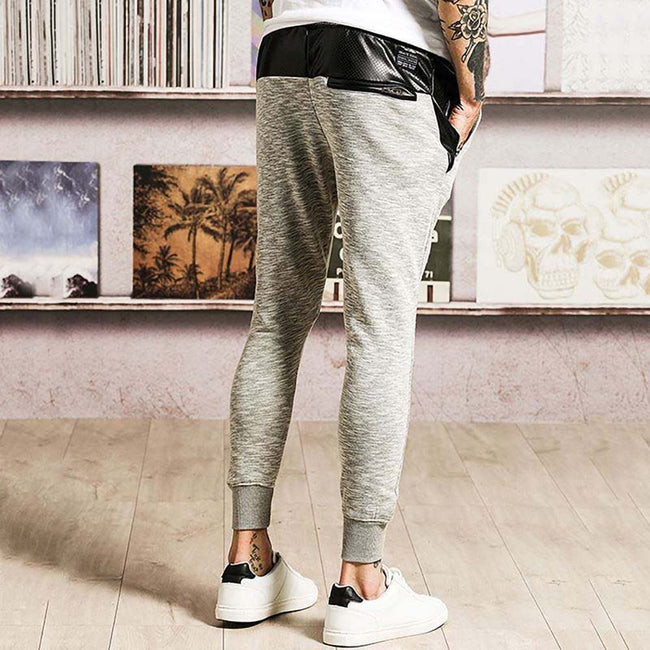 - Mens joggers with PU panels, branded trim and contrast drawcords.