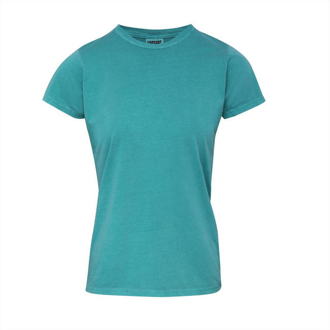 - Womens soft and fitted t-shirt with double needle collar.