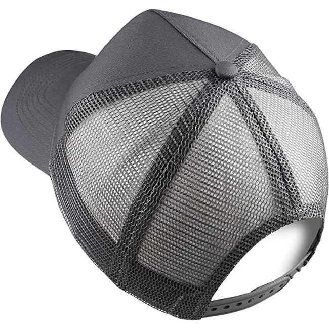 - 6 Panel Design, Button at Top, Curved Brim, Mesh Backing.