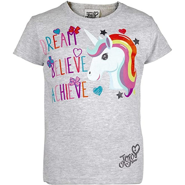- Features the text `Dream Believe Achieve` and unicorn print graphic.
