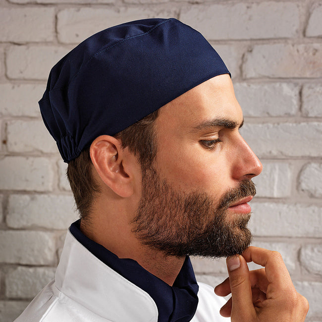 - Flat top chefs skull cap.